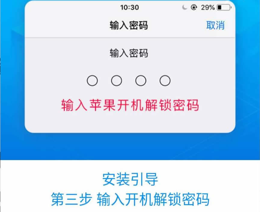 为了确认是设备主人在操作,安装描述文件时需输入【解锁密码】